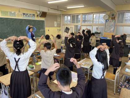 C-NETの先生と、body actionで大文字の復習をしました。「S」のときは腹筋を使いましたね!