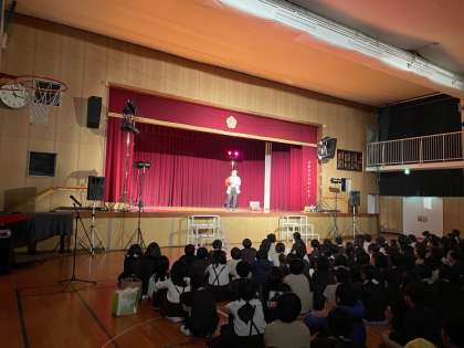 体の動きや表情だけで表現する「パントマイム」を鑑賞しました。パントマイムを初めて目にする子どもたちが多く、一つひとつの体の動きや表情に目を凝らしながら鑑賞しました。