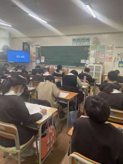 国語と社会のテストを行っている様子です。