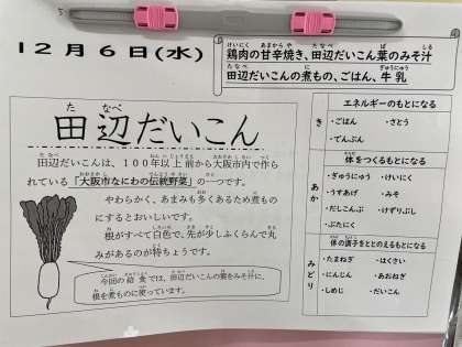 「田辺だいこん」は「なにわの伝統野菜」です。今日は2品に使われていました。