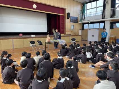 春に田植えをし、夏に草取り、秋に稲刈り、脱穀と長い期間にわたって、取り組んできたスカイビルとのプロジェクト!今日はお米の贈呈式がありました。稲を使ったしめ縄作りも教えていただきました。実体験を通した学び!とても深〜い学びになりました!