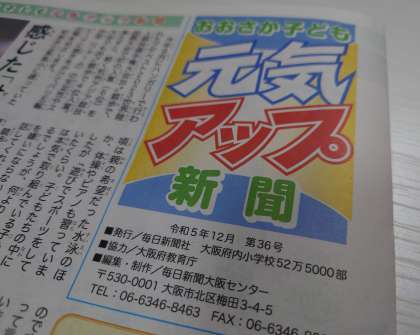おおさか子ども元気アップ新聞に本校の取組が掲載!