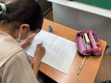 教科書の資料を用いながら、一生懸命意見文を書くことができました。