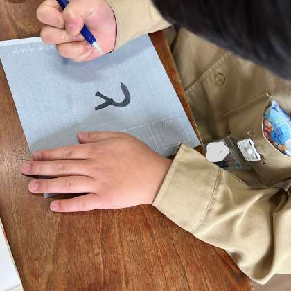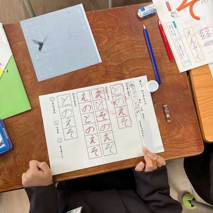 筆と鉛筆のそれぞれの特性を活かして書きます。