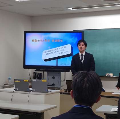 「学習の基盤となる資質・能力の育成〜情報活用能力育成モデルの研究」というテーマで、本校教員が発表しました。