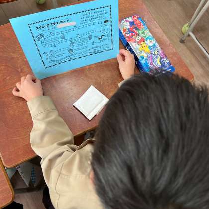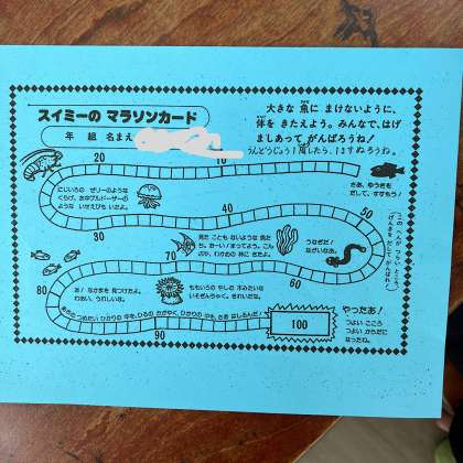 この週間(約1ヶ月ほどありますが)では、運動場で一周走るごとにかけ足カードを一つずつ進めることができます!