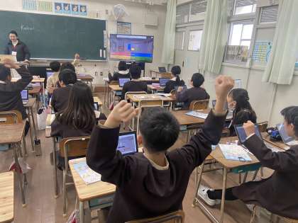 そして、C-NETの先生と1.2学期の復習をゲームで行いました。さて、アルファベットは何文字だったかな!?