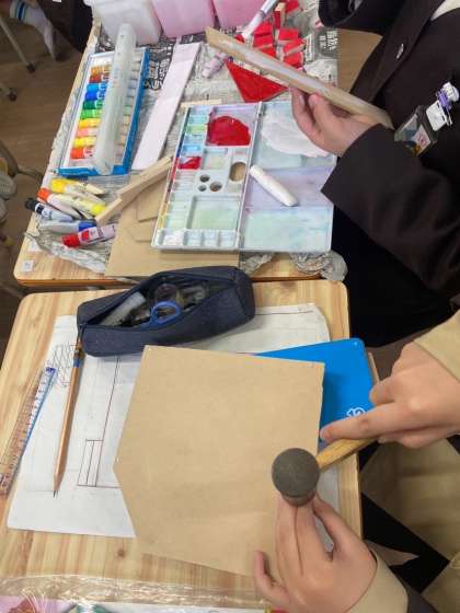 2学期の作品「ギコギコ トントン クリエイター」の続きをしています。