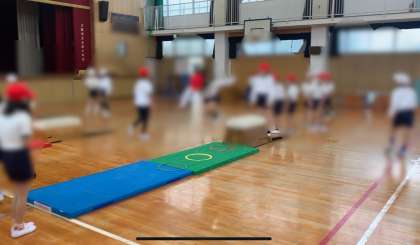 とび箱のポイントと確認しつつ、様々なとび方でとぶことができました。いろいろな高さにも挑戦し、楽しむ姿が見られました。