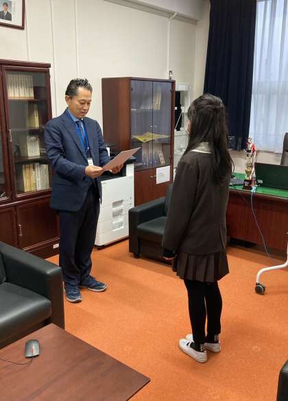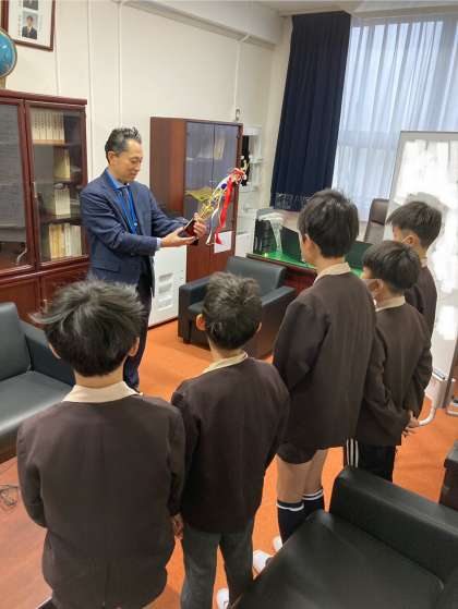 サッカーの大会で優勝したグローボーイズサッカーチームのメンバーと、読書感想文コンクールで賞をいただいた子どもたちの表彰が行われました。