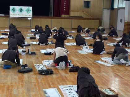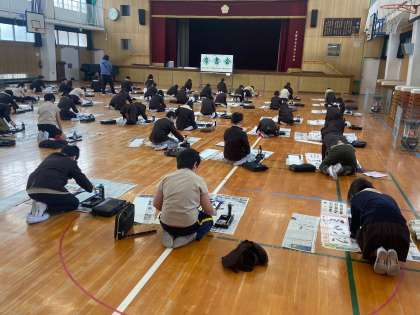 先週の席書会の様子です。静けさの中、心を落ち着かせて取り組みました。