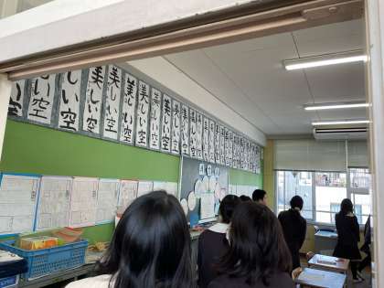 給食後、各学年の習字の見学に行きました。一生懸命書かれた作品を真剣に観ることができました。