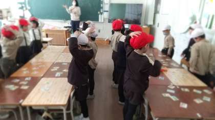 ルールや、やり方の確認をして実際にやってみました。たくさんある絵札の中から見つけるのは大変!チームのために集中してがんばりました。