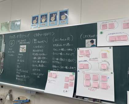道徳科「その思いを受け継いで」の学習で、命の大切さを学びました。今回は自分の考えをグループで持ち寄って似た意見をまとめていく方法で発表しました。「ここは一緒だけど、ここは違う」などそれぞれの考えをしっかりと理解することができました。