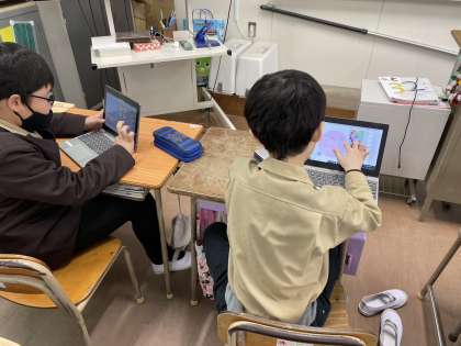 1月24日(水)6時間目にクラブ活動がありました。プログラミングクラブの様子です。今日は「ビスケット」を使って、いろいろなクイズ作りにチャレンジしました。