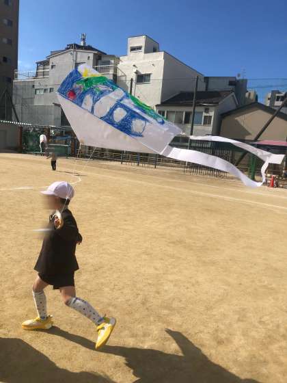 寒空の下、みんなで元気よくたこあげをしました。たくさん絡まったけど、それも良い思い出!みんなの楽しい笑顔が見れました!