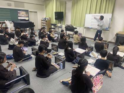 音楽科では、リコーダーで「走れシベリア鉄道」を学習しています。
