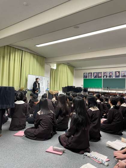 合唱のポイントを真剣に聞き、繰り返し練習をしています。