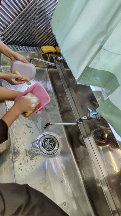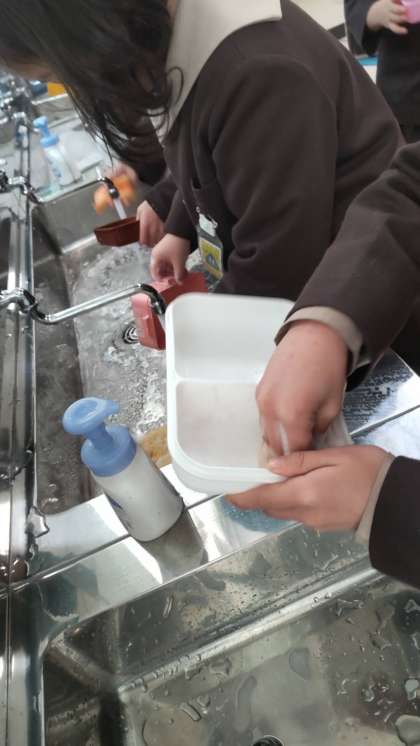 生活科のできるようになったよの学習で、お弁当箱を洗う、学習を行いました。