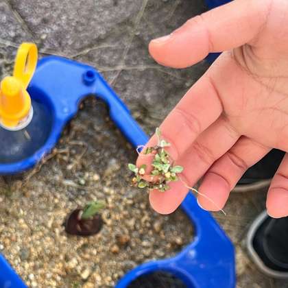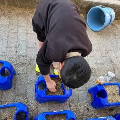 球根が土から出過ぎていたら土をかぶせてあげます。
