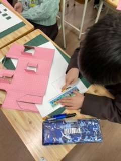 カッターを使うことにもなれ、思うままに建物を完成させています。できあがりが楽しみです!