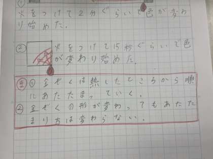 もののあたたまり方の学習。今日も不思議と発見に出会えました。