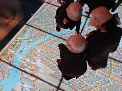 地面に表示されている地図で、大淀小学校を探す児童もいますね。