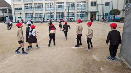 今日は、外で友だちとチームを作って競走して遊んでいる児童がいました。