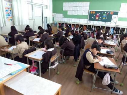 国語のテストに取り組みました。漢字が難しいなぁ…。