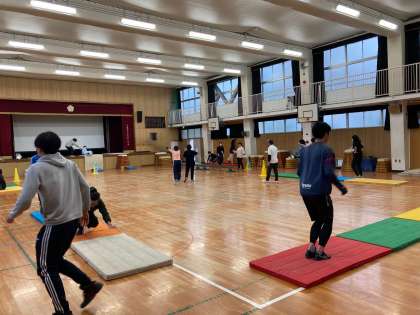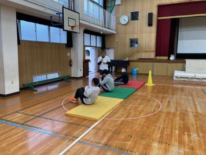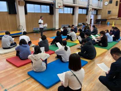 教育センターより講師の先生をお招きし、体育実技研修会が行われました。授業に活かせるノウハウをたくさん教えていただきました!
