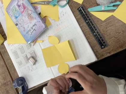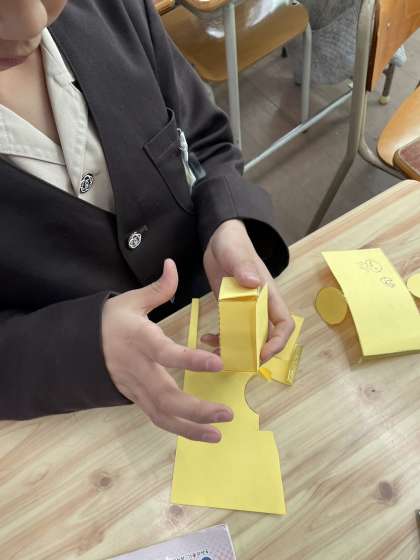 算数の学習の様子です。立体について、実際に作って考えました。展開図の書き方についても学習していく予定です!