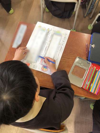 右手に入学後の4月に、初めて書いた自分の名前があります。「きれいに書けるようになったなあ」と自分の成長を実感する声がたくさん上がりました。