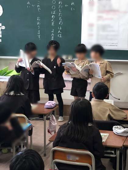 『スイミー』の学習の最後の締めくくりは、心を込めての音読。班ごとに、練習した成果を発揮して、上手に音読できました。手を使って、表現していたお友だちもいましたね。