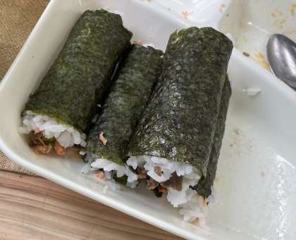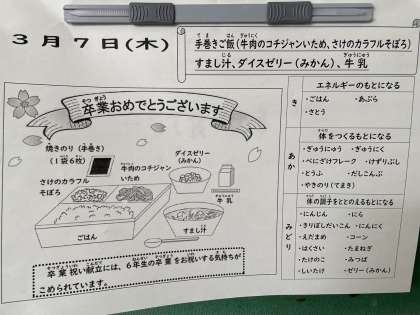 今日は卒業祝い献立でした。子どもたちも上手に手巻きご飯を作って食べていました!