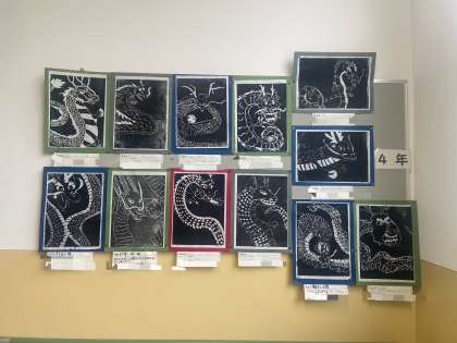 初めて彫刻刀を扱い、木版画に挑戦しました。「龍」をテーマに、版木に下絵をかき、三角刀や(小)丸刀を使って彫り進めました。集中して時間をかけて取り組んだ分、刷り上がった作品に愛着をもてましたね。