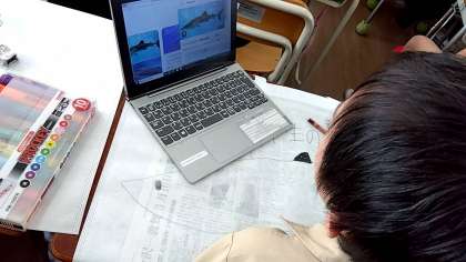 3年生の思い出の絵を作品袋に描いていきました。タブレットで検索するのも素早くなってきました。