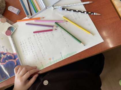 国語の学習で詩の視写に取り組みました。6年生らしく、美しい字で書きうつすことができました。詩を想像しながら、イラストも描きました。