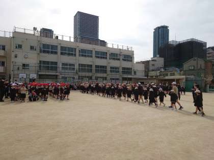 2年生から1年生にプレゼントが渡され、最後は児童全員での「じゃんけん列車」で盛りあがりました!