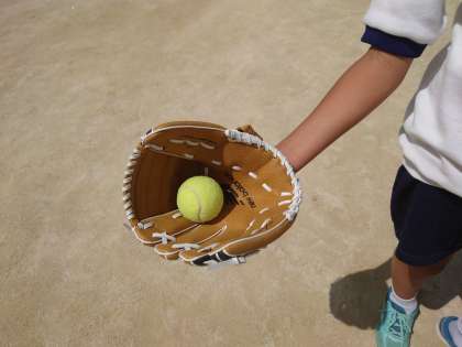 大谷選手から寄贈いただいたグローブを活用して取り組んでいます。