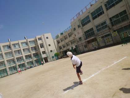 ソフトボール投げの授業。