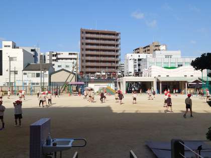 朝一番からたくさんの子どもたちが運動場で遊んでいます。