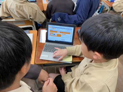 6年生が1年生にパソコンの使い方を教えに行きました。電源の入れ方、「心の天気」の入力の仕方、タブレットドリルの開き方など、優しく教えていました。異学年交流の素敵な場面が見られました!