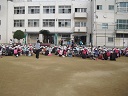 運動場に集合して、集団下校を行いました。