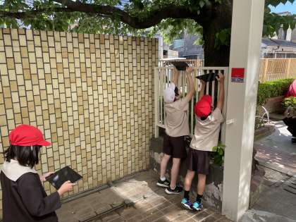 本日は下描きにむけて学校内にある木の写真を撮りに行きました。一見何でもない木でも、じっくり観察してみると様々な発見があるようで、終始楽しそうな表情を見せてくれました。