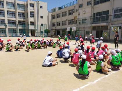 リレーの練習をしました。12チームに分かれ、作戦を練って試走しました。練習ですが、大盛り上がりでした。
