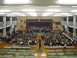 上の写真のように全校児童381名が同じ方向を向いての大合唱です。