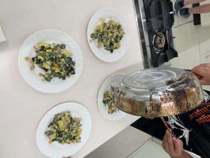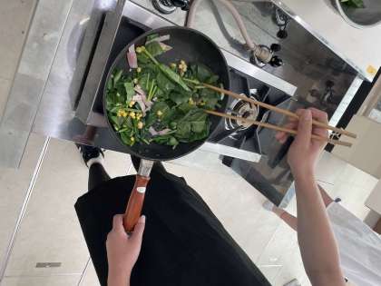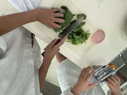 調理実習を行いました。グループで役割を決めて、テキパキと準備、調理、片付けをすることができました。どのグループもおいしい炒め物を作ることができたようです!