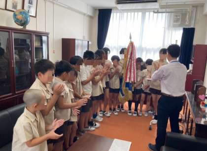 ?今日の児童朝会では、