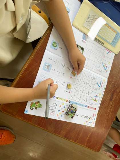 ひらがなを終え、かたかなの練習に取り組んでいます。