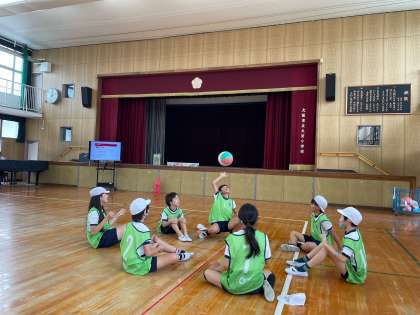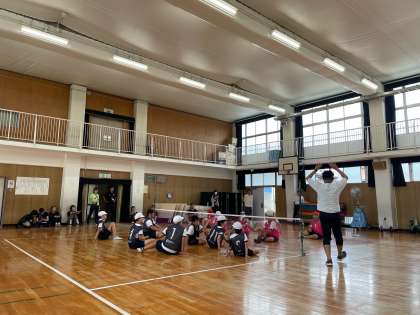 パラリンピックの種目である「シッティングバレーボール」を体験しました。